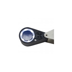 Achromatic triplet jewelers loupe with ring of LEDs for illuminating diamonds and other gemstones. Useful and essential tool for jewellers.