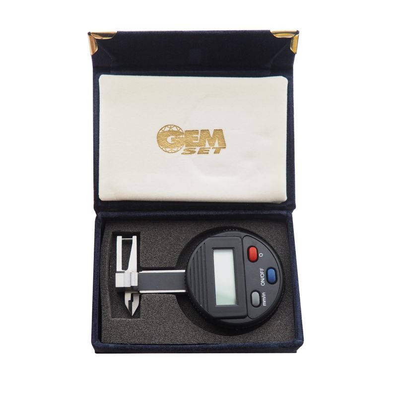 Special gauge for diamonds and precious stones, with special jaws to take both inside and outside measurements, for both loose and set stones. It can be used to assess the tickness of objects as small as melee diamonds as well.
