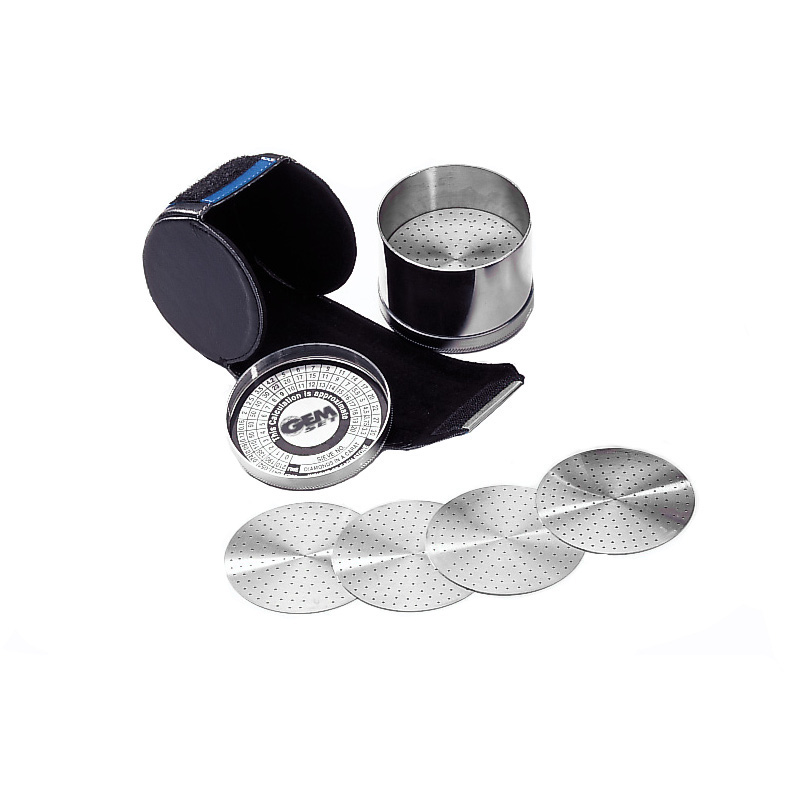 The HS series is available in 5 different diameters: 33, 48, 66, 80 and 107 mm and two different plates combination, that is 21 or 42 plates. This set comes with 42 plates, two caps and two half cylinders paired and fits into an elegant double tone blue and black case with strap closure.