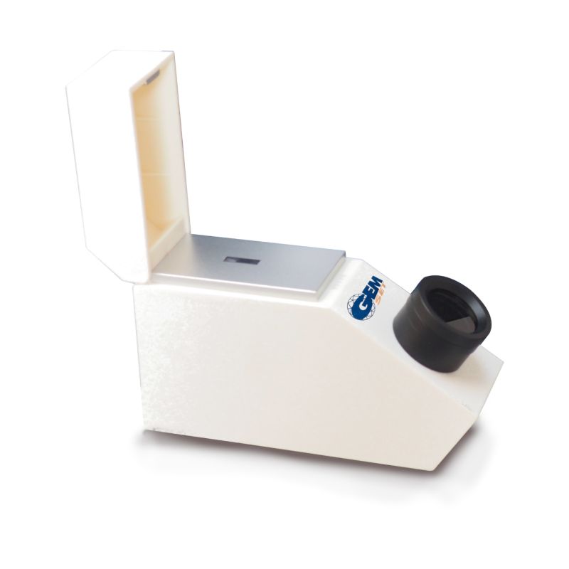 One of the fastest and most effective tool for gemstones identification, used to measure the gem’s refractive index. Thanks to the polarizing filter, it’s also possible to verify if the gemstone is birefringent. Advanced refractometry techniques allow to determine the optical axes number of a birefringent gemstone, and its optical sign as well. Use of a contact liquid required.