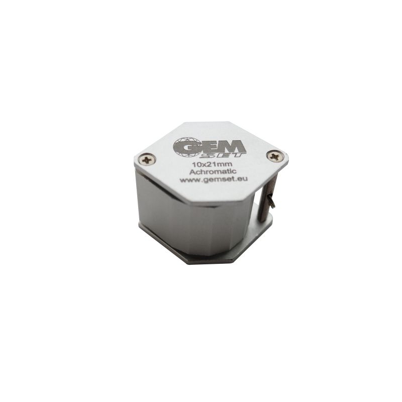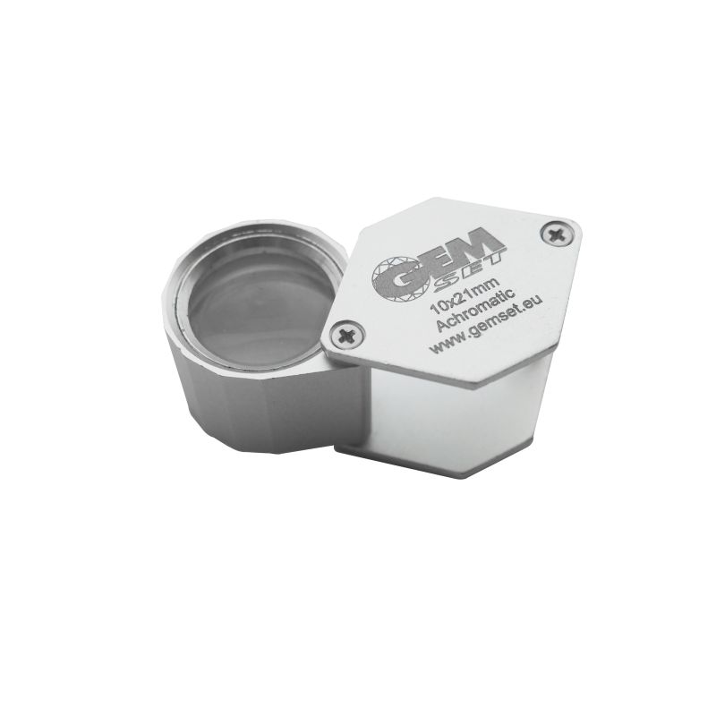 Very elegant, polygonal body, wide view loupe fully corrected aplanatic and achromatic to give edge-to-edge brightness and sharpness with no distracting glare. It comes with an elegant round blue/black carrying case.
