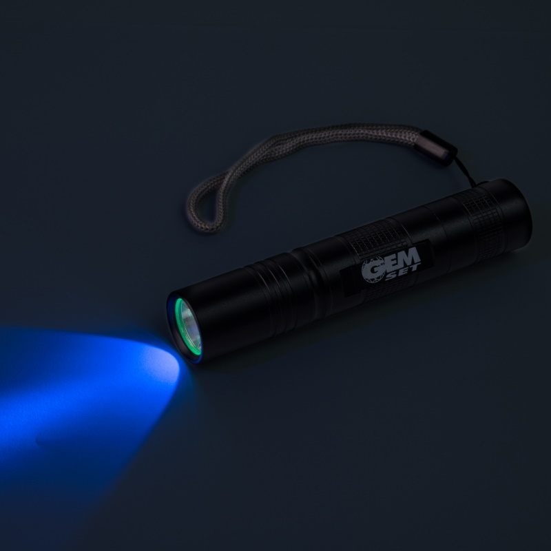 A powerful 365 nm UV light source (long waves) for diamond fluorescence grading, portable and ideal for in-field inspection